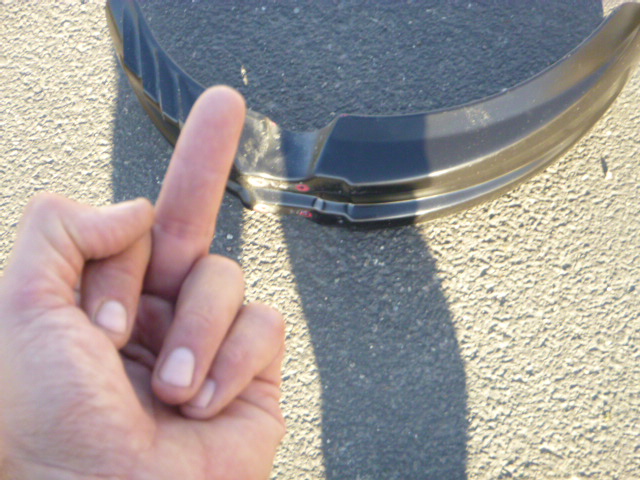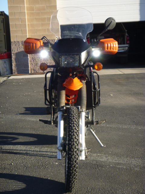 Shiny new $9 Acerbis Supermoto front fender. Took it out in the wind tunnel masquerading as a highway and while I got beat up by the wind, the front end was solid.