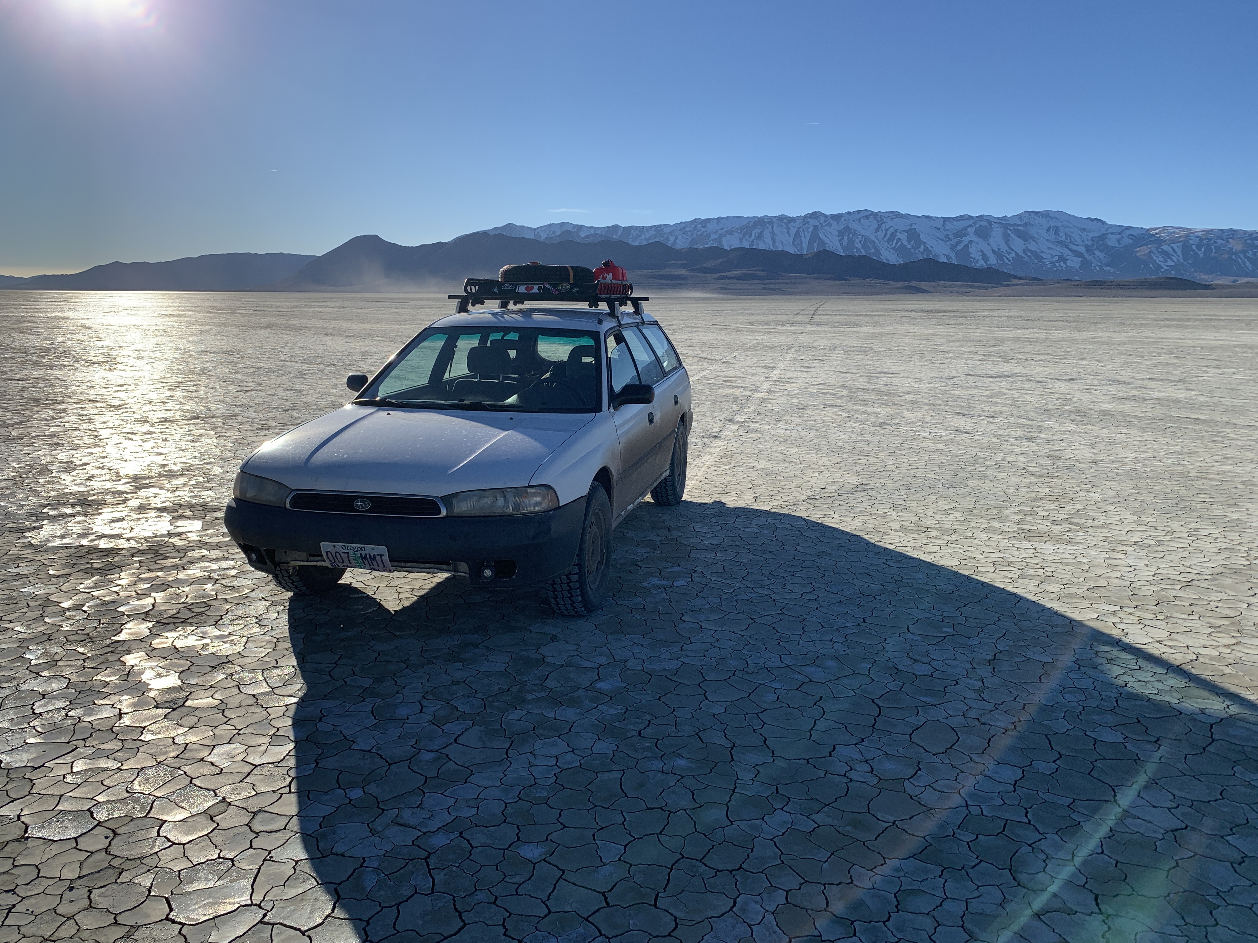 A couple weeks ago conditions presented a great opportunity to get the Super Soob out in the desert so I headed SE on mainly dirt roads to the Black Rock Desert to camp out and hang in a hot spring. Had some less than fun foot deep rock hard snow ruts to deal with while cutting across the Modoc NF to Alturas, but the Soob handled it well. I’m impressed with how well a battered and modded 25 year old car with over 300K miles on it just keeps trucking on. Turned over 300k on the trip, which was intentional. Wanted to have it out on an adventure for the big event, not rolling to the grocery store…so pedestrian!